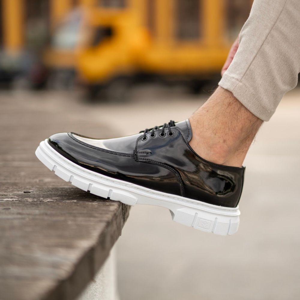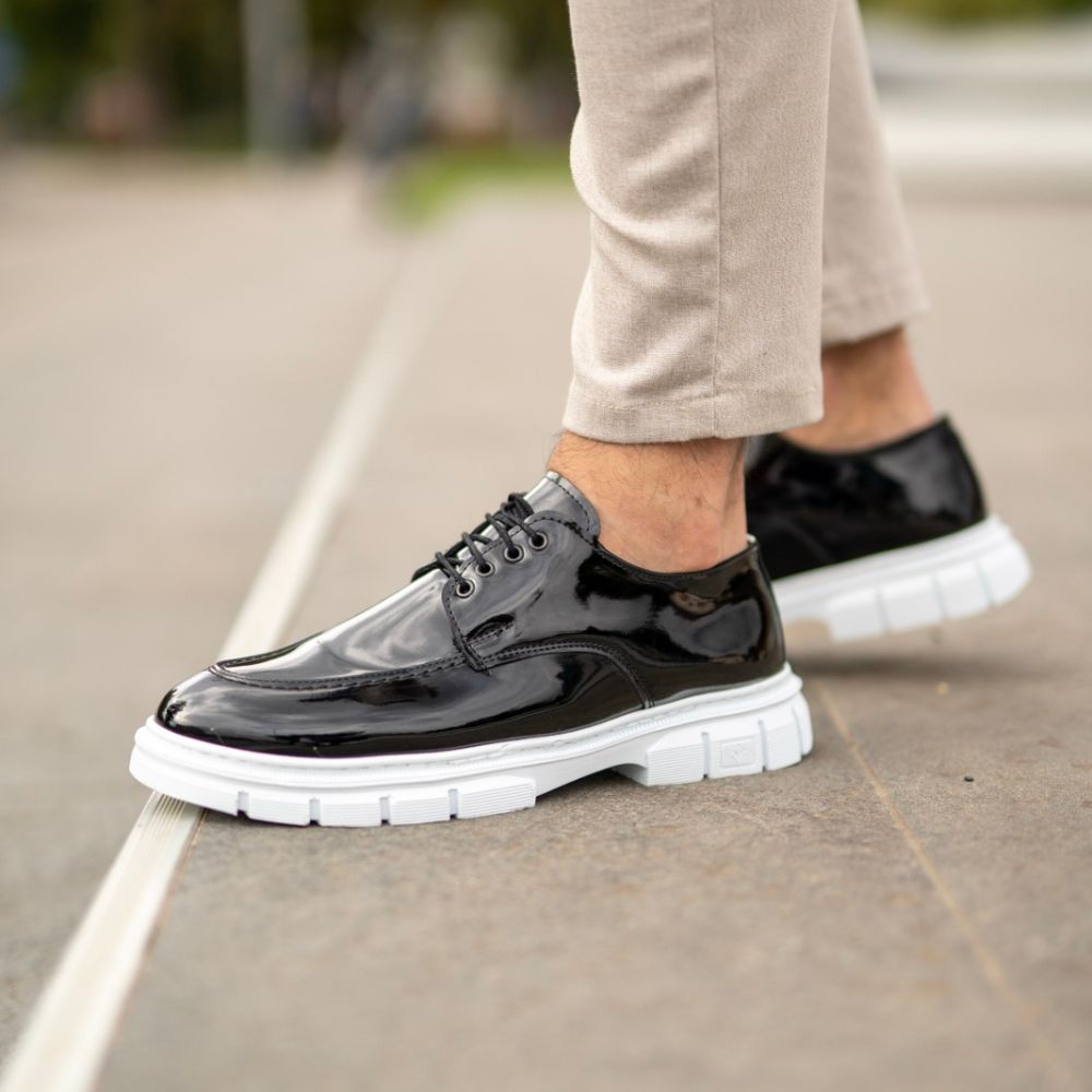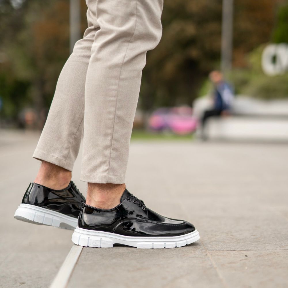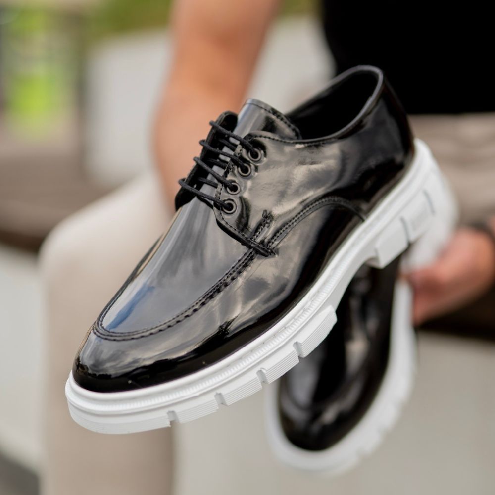 Unesi dozu elegancije i modernog stila u svoj outfit uz MUŠKE CIPELE RM726 – spoj klasičnog dizajna i urbanog izraza. Ove cipele izrađene su od visokokvalitetne lakovane eko kože, koja pruža prefinjen sjaj i sofisticiran izgled, dok robusni bele gumene đonovi donose dozu sportskog karaktera i izuzetnu udobnost tokom celog dana.