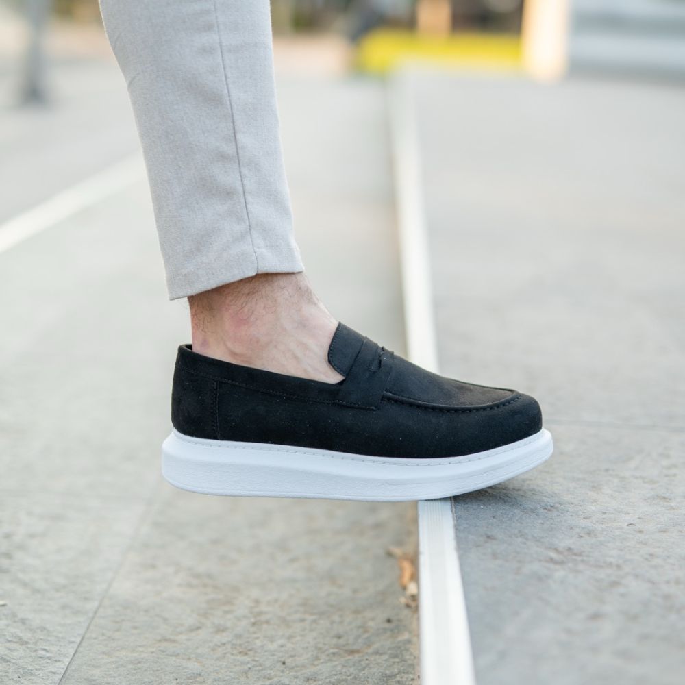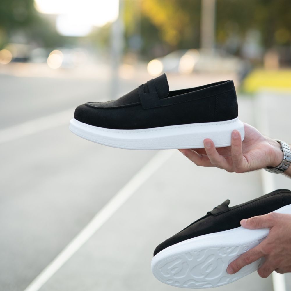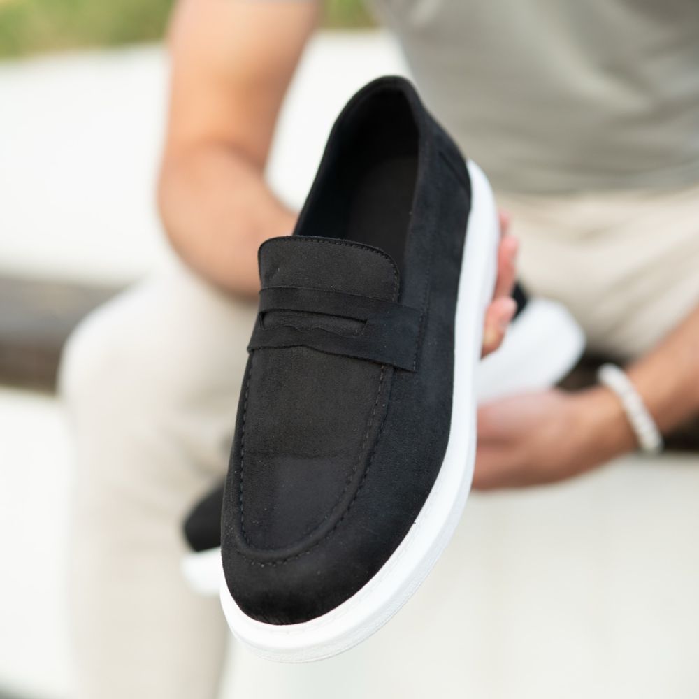 Gornjište je izrađeno od visokokvalitetnog crnog eko-antilopa, koji daje baršunastu teksturu i dubinu dizajnu. Kontrast između potpuno crnog gornjišta i jarko belog đona čini ove mokasine idealnim za "smart-casual" prilike gde želite da izgledate sređeno, ali i moderno.