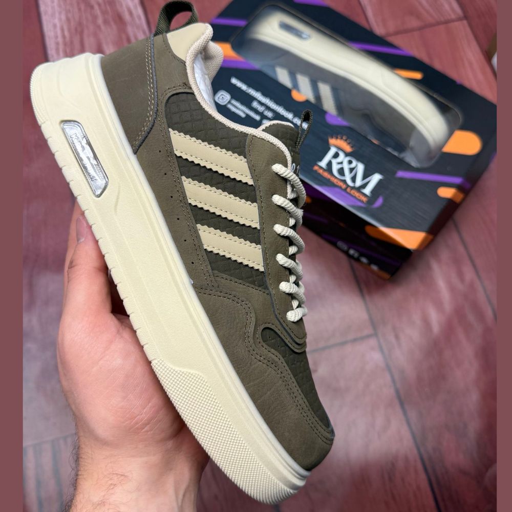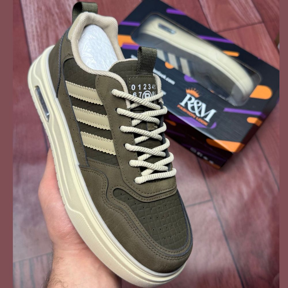 ✔ Boja: Maslinasto zelena – moderna i laka za kombinovanje ✔ Zatvaranje: Klasične pertle u krem boji ✔ Materijal: Visokokvalitetna eko koža sa reljefnim detaljima ✔ Đon: Uzvišeni gumeni đon sa "Air" prozorom za dodatnu udobnost ✔ Dizajn: Savremeni street-style kroj sa prepoznatljivim prugama