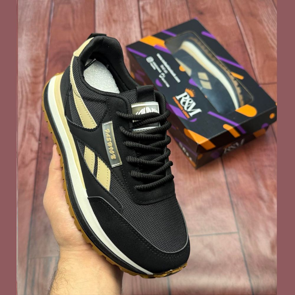 RM805 patike su dizajnirane za muškarce koji traže savršen spoj retro sportske estetike i savremenog uličnog stila. Ovaj model se izdvaja dinamičnim kontrastom crne osnove i bež detalja, pružajući upečatljiv izgled koji odiše energijom i stabilnošću.