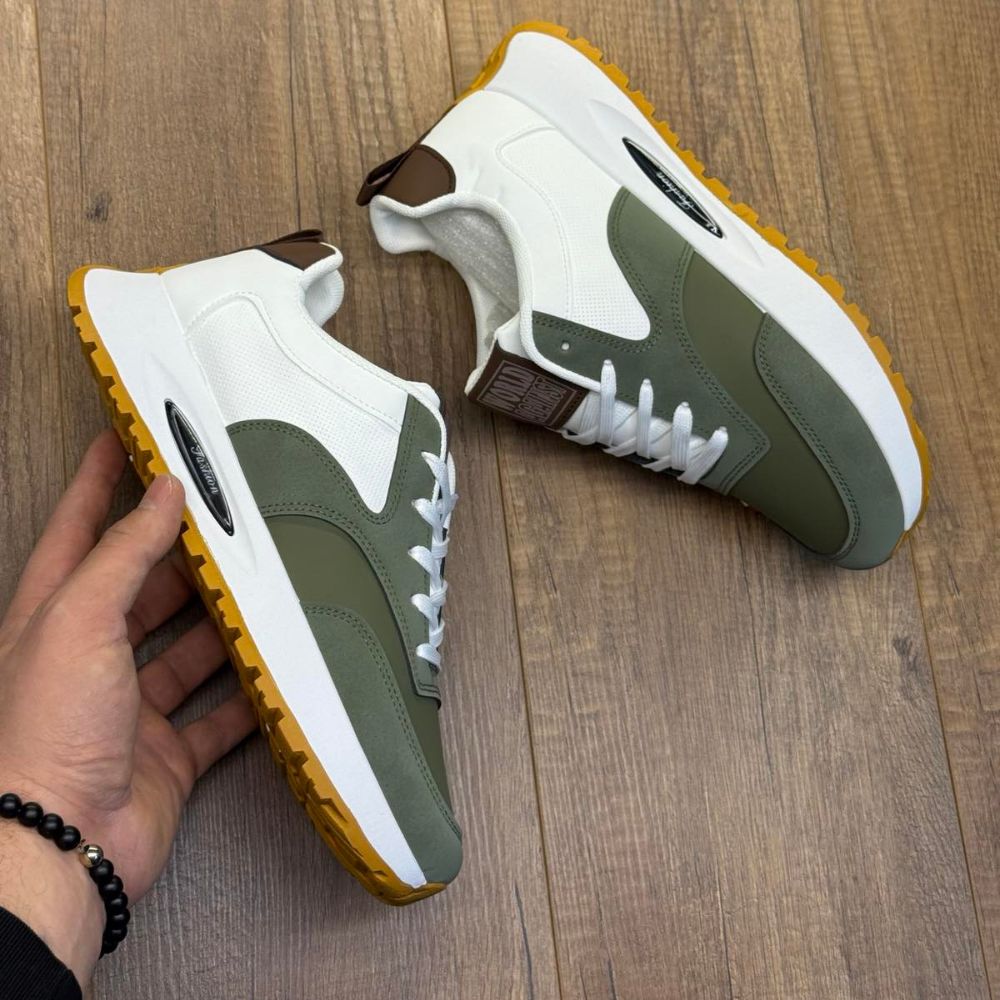 ✔ Boja: Bela sa maslinasto zelenim (olive) panelima i braon detaljima na peti ✔ Zatvaranje: Klasične bele pertle za maksimalnu stabilnost i lako prilagođavanje ✔ Materijal: Izdržljiva eko-koža sa preciznom završnom obradom ✔ Đon: Uzvišeni beli đon sa karakterističnim donjim slojem u boji meda ✔ Detalji: Moderni kontrasti i diskretna perforacija na prednjem delu za bolju prozračnost