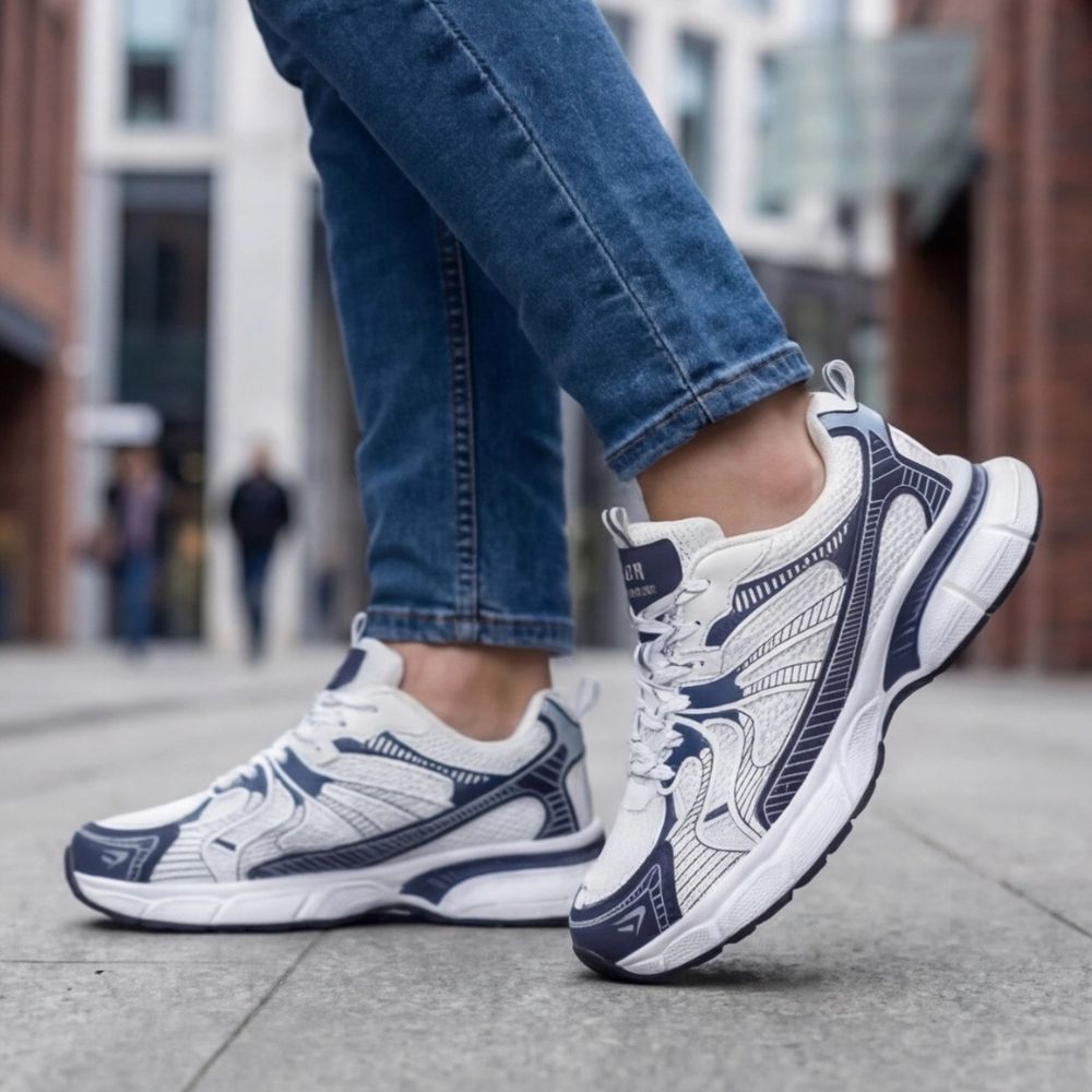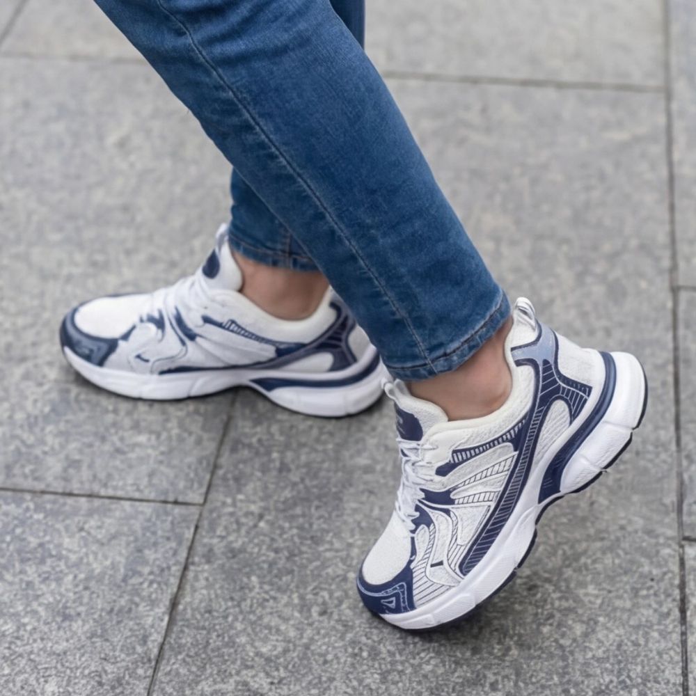 ✔ Boja: Klasična sportska kombinacija bele, teget plave i sive – čista i energična paleta ✔ Zatvaranje: Dvobojne (teget-bele) pertle koje se savršeno uklapaju u tehnički dizajn gornjišta ✔ Materijal: Višeslojna mrežica za maksimalnu ventilaciju i sintetička ojačanja za strukturu ✔ Đon: Masivan, skulpturalni beli đon sa teget detaljima i ojačanim zadnjim delom ✔ Detalji: Reflektujući elementi i specifični teksturirani paneli za moderan "high-tech" izgled