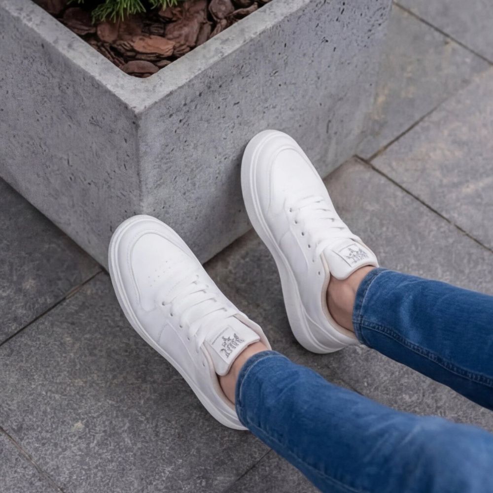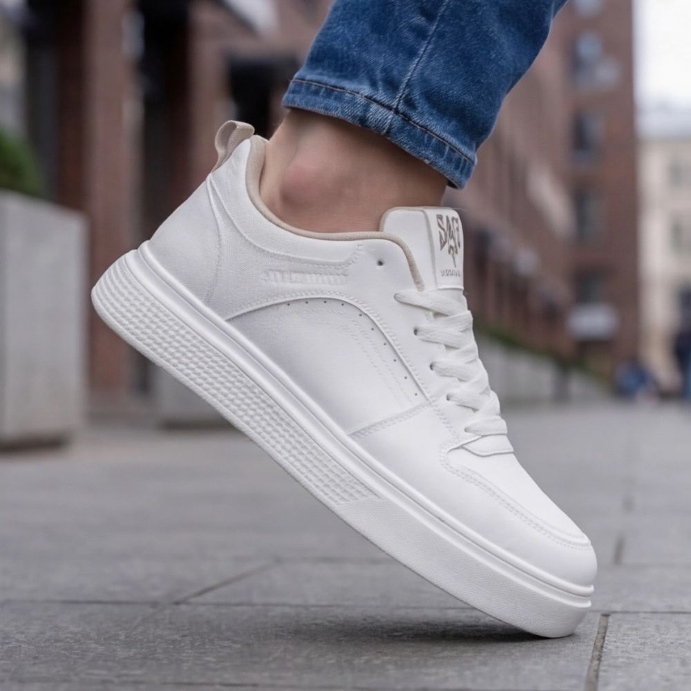 ✔ Boja: Dominantna snežno bela sa elegantnim bež (nude) detaljima na jeziku i peti. ✔ Zatvaranje: Klasične bele pertle koje doprinose svedenom i čistom izgledu modela. ✔ Materijal: Izdržljiva i mekana eko-koža sa preciznim štepovima i perforacijama na prednjem delu za bolju ventilaciju. ✔ Đon: Masivan beli gumeni đon sa rebrastom bočnom teksturom za moderan vizuelni efekat. ✔ Detalji: Prepoznatljiv „SAGE FASHION“ logotip na jeziku i utisnuta „SINCE 1987“ oznaka na bočnoj strani.