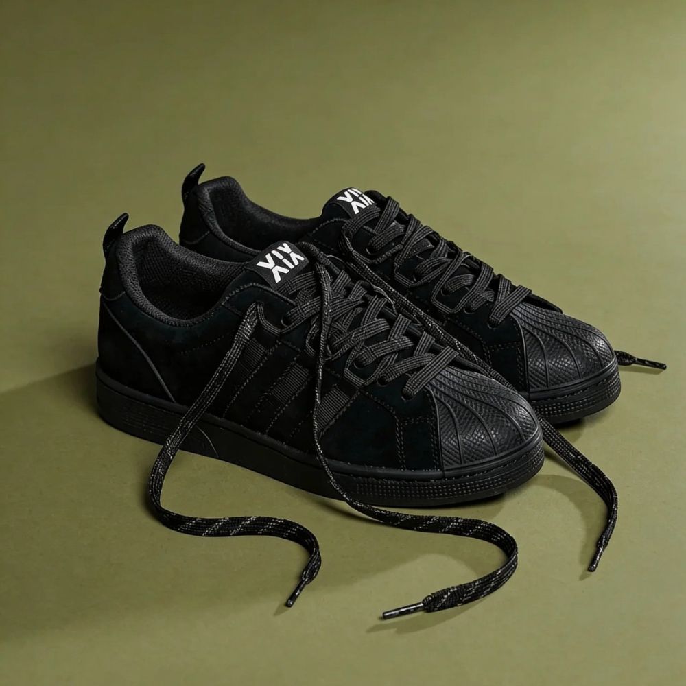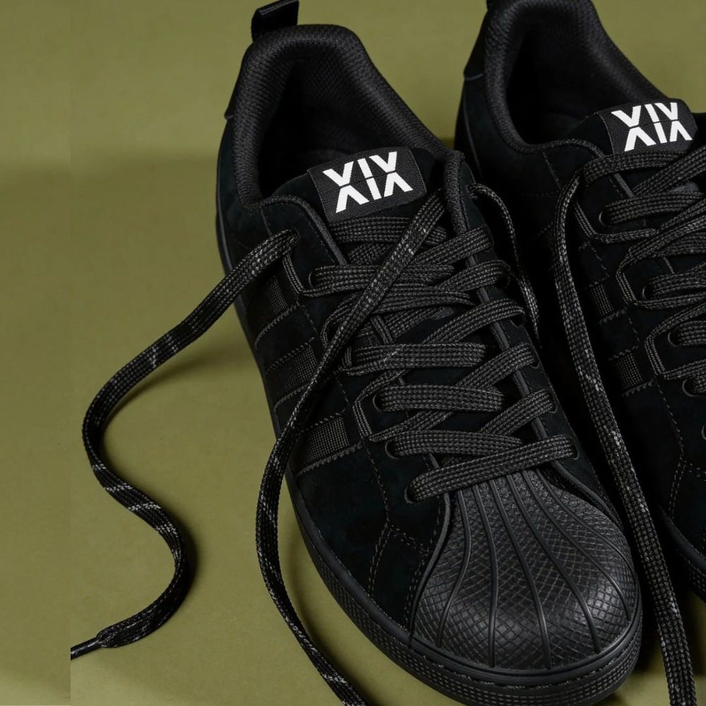 ✔ Boja: Potpuno crna (Triple Black) – idealna za sve vremenske uslove i lako kombinovanje. ✔ Zatvaranje: Široke crne pertle koje doprinose masivnom i sigurnom profilu patike. ✔ Materijal: Premium eko-koža sa antilop efektom i ojačanim gumenim vrhom za maksimalnu dugotrajnost. ✔ Đon: Čvrst gumeni đon sa teksturiranim ivicama koji osigurava odlično prianjanje na svim podlogama. ✔ Detalji: Kontrastni crno-beli „VIV“ logotip na jeziku kao jedini svetli akcenat na modelu.