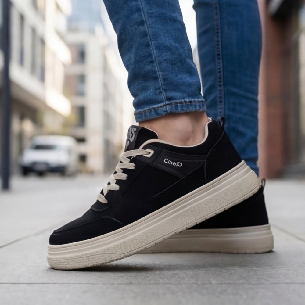 Gornjište je izrađeno od visokokvalitetne crne eko-kože sa mat završnom obradom, dok krem (off-white) detalji na pertlama, unutrašnjoj postavi i đonu pružaju savršen vizuelni kontrast. Specifični bočni paneli sa natpisom „Clooip“ i prepoznatljiv „SAGE FASHION“ logotip na jeziku daju modelu autentičan pečat i naglašavaju njegovu pripadnost premium urbanim kolekcijama.