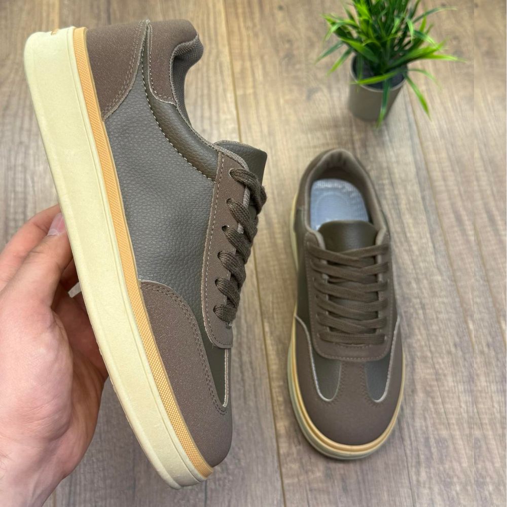 Gornjište u boji kafe savršeno se dopunjuje sa krem đonom i karakterističnim braon rubom (gum sole), stvarajući harmoniju koja je idealna za jesunju i prolećnu garderobu. Diskretni pleteni detalji na bočnim panelima dodatno naglašavaju moderan karakter ovog modela.