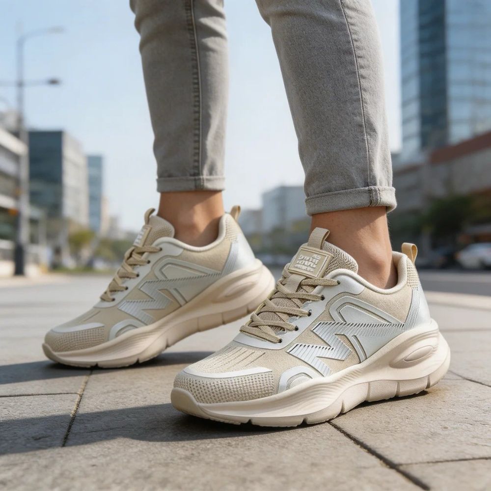 Đon: Robusan, višeslojni đon u boji peska, dizajniran da pruži maksimalnu amortizaciju i udobnost.