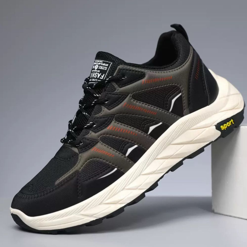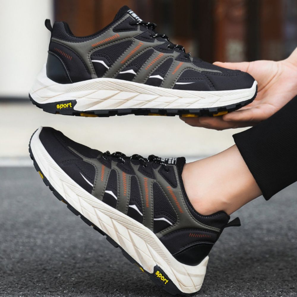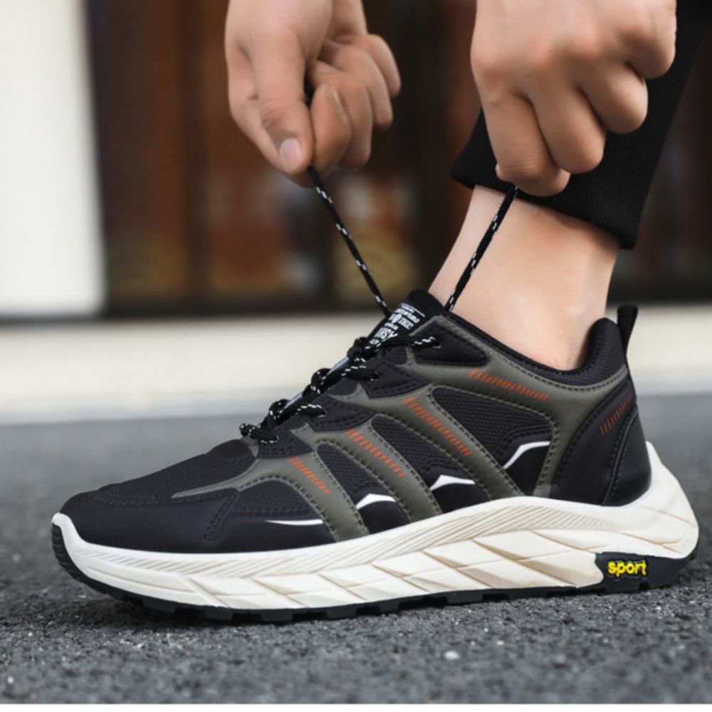 Boja: Dominantna crna i tamnosiva sa narandžastim linijskim detaljima i belim elementima na đonu i gornjištu.