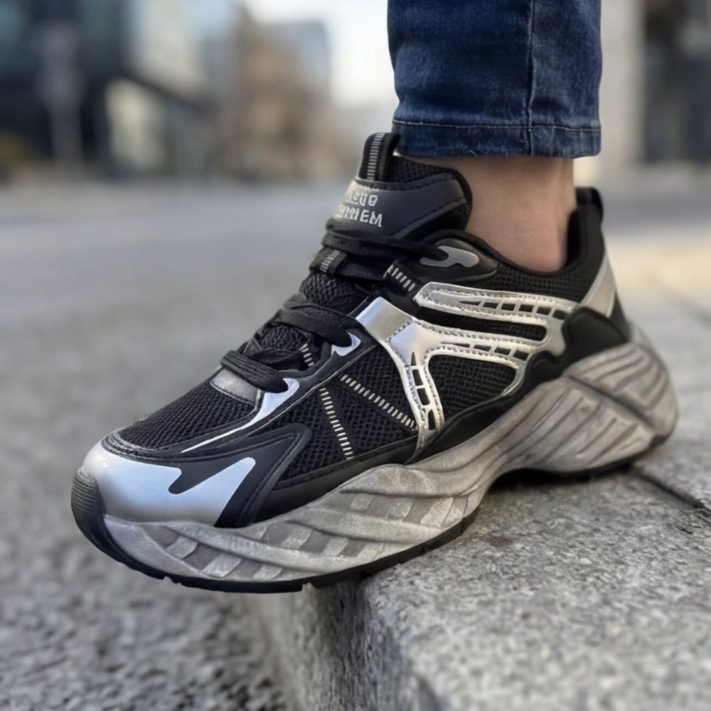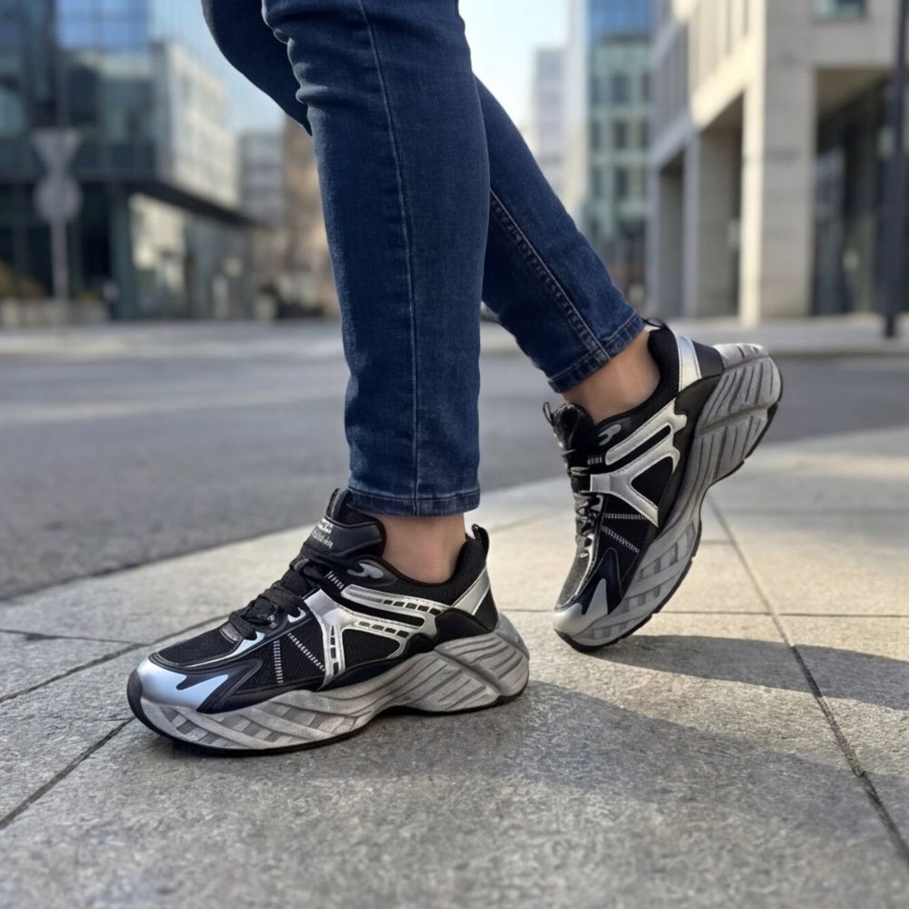 Dizajn: Niska silueta sa povišenom petom i jezikom, inspirisana futurističkim "streetwear" trendovima.