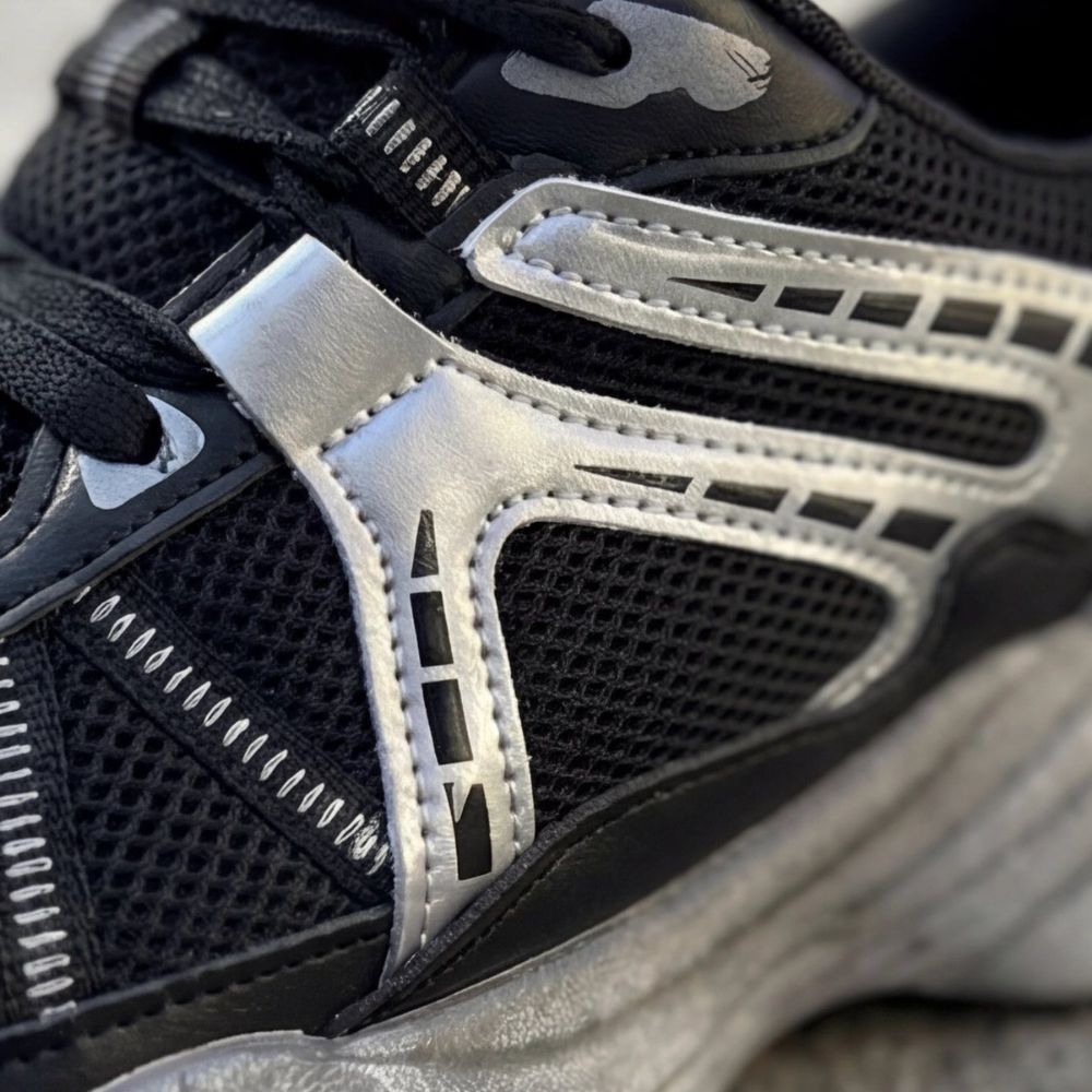 Model RM916 je dizajniran za one koji žele da ostave snažan utisak na gradskim ulicama. Ove patike karakteriše baza u crnoj boji preko koje dominiraju hromirani srebrni paneli, stvarajući oštar i tehnološki napredan vizuelni identitet.