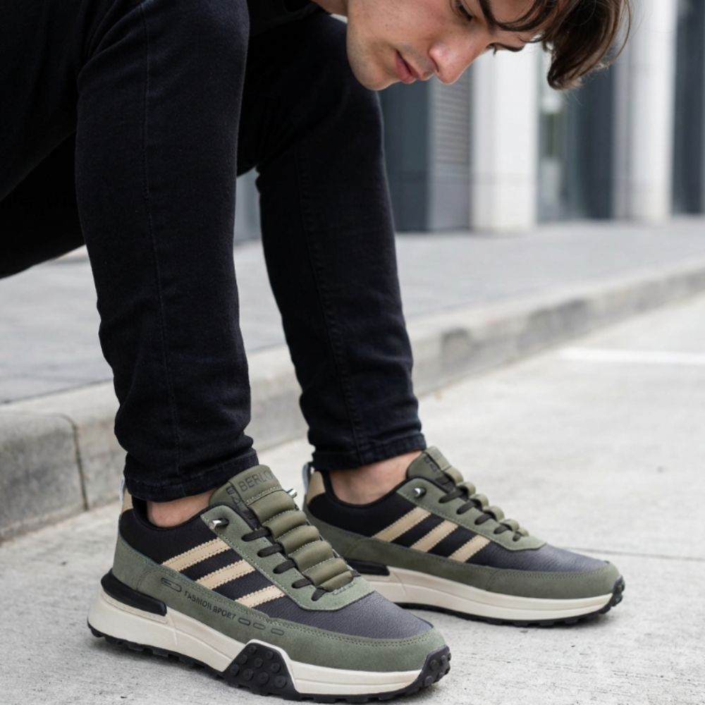 ✔ Boja: Maslinasto zelena sa svetlosivim i bež detaljima – moderna i prirodna paleta ✔ Zatvaranje: Kvalitetne maslinaste pertle za optimalnu stabilnost ✔ Materijal: Kombinacija visokokvalitetne eko kože i teksturiranih ojačanja ✔ Đon: Masivan sivi đon sa prozirnom vazdušnom komorom za vrhunski komfor ✔ Dizajn: Sportski profil sa diskretnim „Sport“ natpisom i ojačanim zadnjim delom