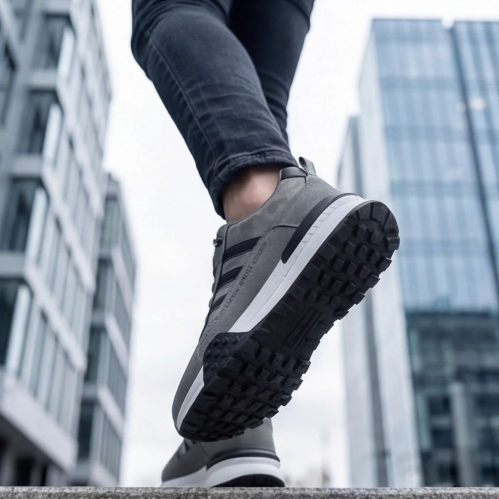 Gornji deo je izrađen od vrhunske kombinacije materijala sa preciznim štepovima, dok unutrašnjost pruža izuzetnu mekoću za celodnevnu upotrebu. Poseban akcenat je na masivnom, višeslojnom đonu sa rebrastim profilom i dodatnim ojačanjima na bočnim stranama, što garantuje stabilnost i vrhunsku amortizaciju pri svakom koraku.