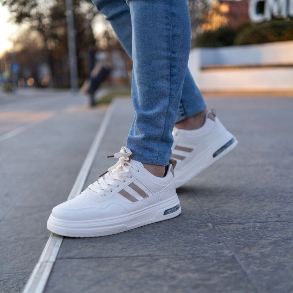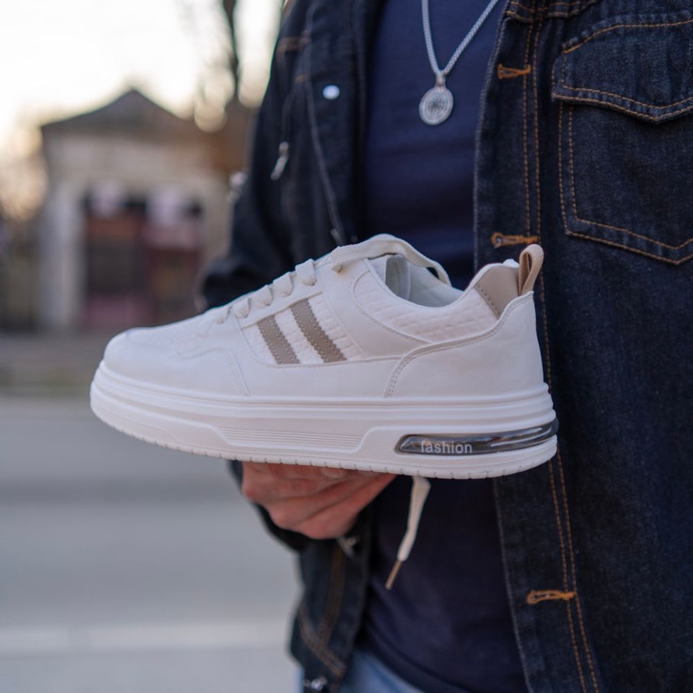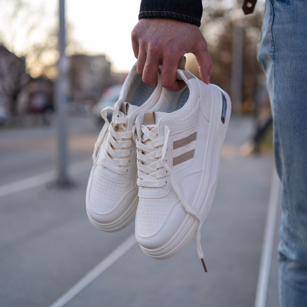 ✔ Boja: Bela sa bež (pesak) detaljima – elegantna i svestrana paleta ✔ Zatvaranje: Klasične bele pertle za sigurno i udobno fiksiranje ✔ Materijal: Kombinacija glatke i reljefne eko kože za premium izgled ✔ Đon: Uzvišeni beli gumeni đon sa naglašenom stabilnošću ✔ Dizajn: Moderan „lifestyle“ kroj sa akcentom na detalje i teksturu